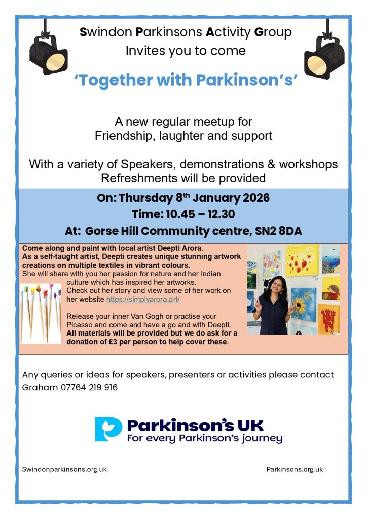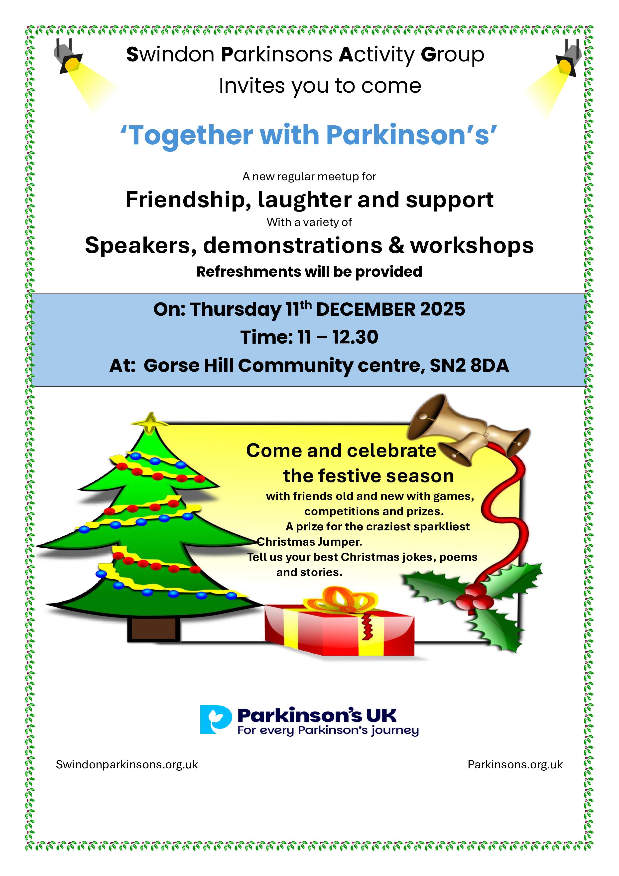 Members and non-members: To book, please pay £8 deposit, either: a) Pay online to Parkinsons Disease Society of the United Kingdom. Sort Code: 20 00 00, Account no: 936 164 52 and importantly, use ref: pub or, b) By cheque payable to Swindon Parkinsons Activity Group and send to: Mrs S Rhodes, 1 Charlbury Rd, Shrivenham, Swindon SN6 8EQ or give to one of the volunteers.